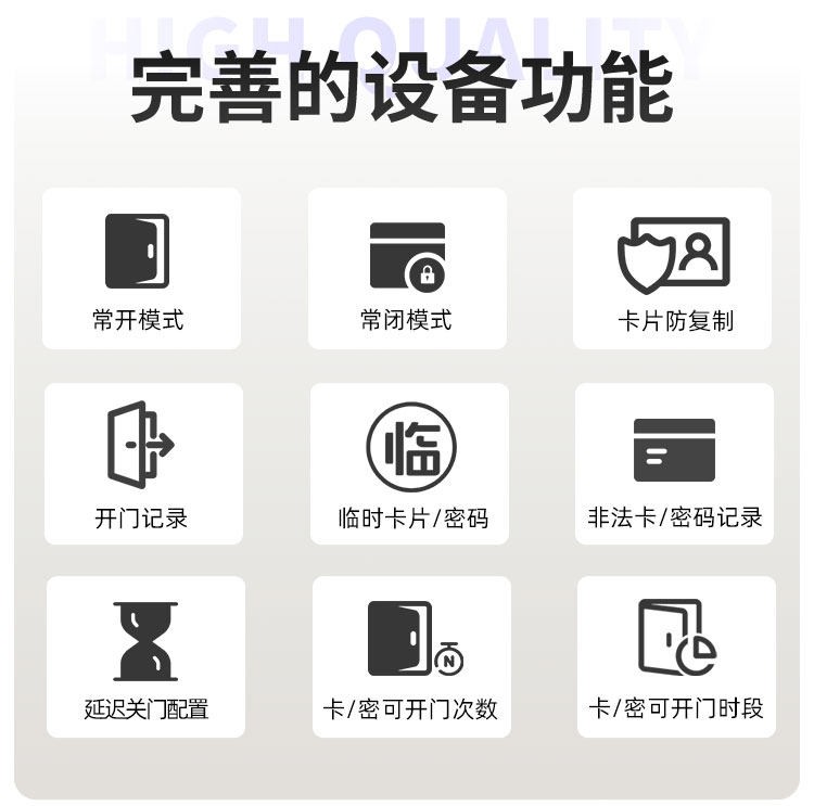 苏州这款智能门锁提供室内门锁和防盗门锁两种选择,其中室内门锁尺寸为 2806521mm,适配 5050 锁体;防盗门锁尺寸为 3657021mm,适配 6068 锁体,可满足不同场景的安装需求。它采用铝合金一体成型搭配钢化玻璃面板打造,兼具坚固耐用的品质与简洁美观的视觉效果。门锁支持蓝牙无线通讯,解锁方式丰富多样,密码、卡片、蓝牙、钥匙四种方式随心选择,满足不同使用习惯与应急需求。其工作温度范围为 - 20~70℃,能适应多数地区的气候条件,采用碱性电池供电,安装更换便捷,是兼具安全性与实用性的门锁选择。